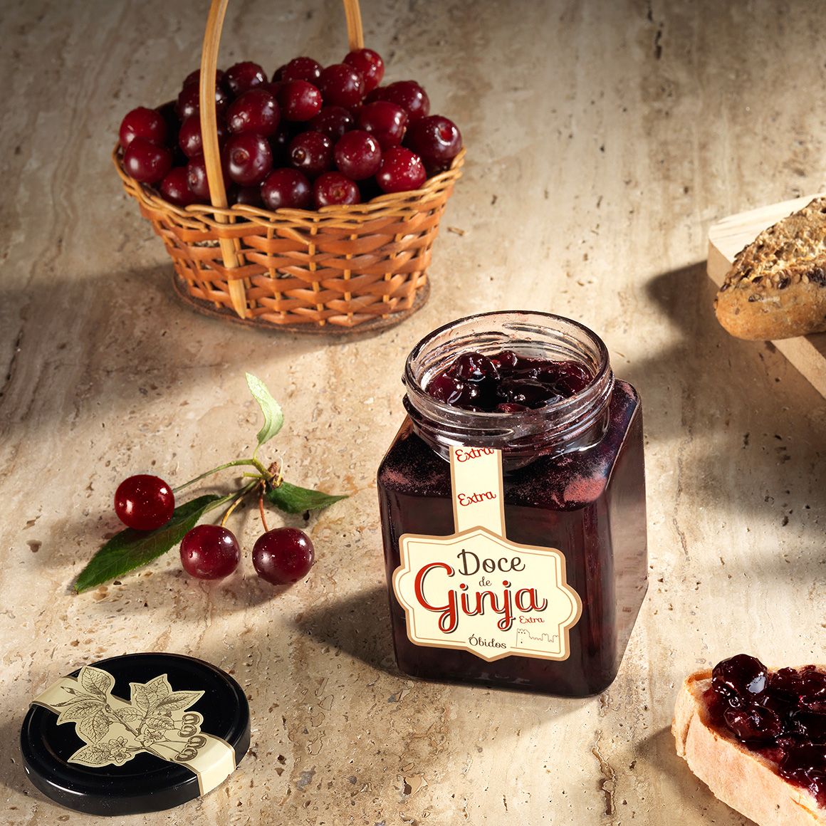 À calda de açúcar junta-se a ginja para obtenção deste doce que lembra o das nossas avós.