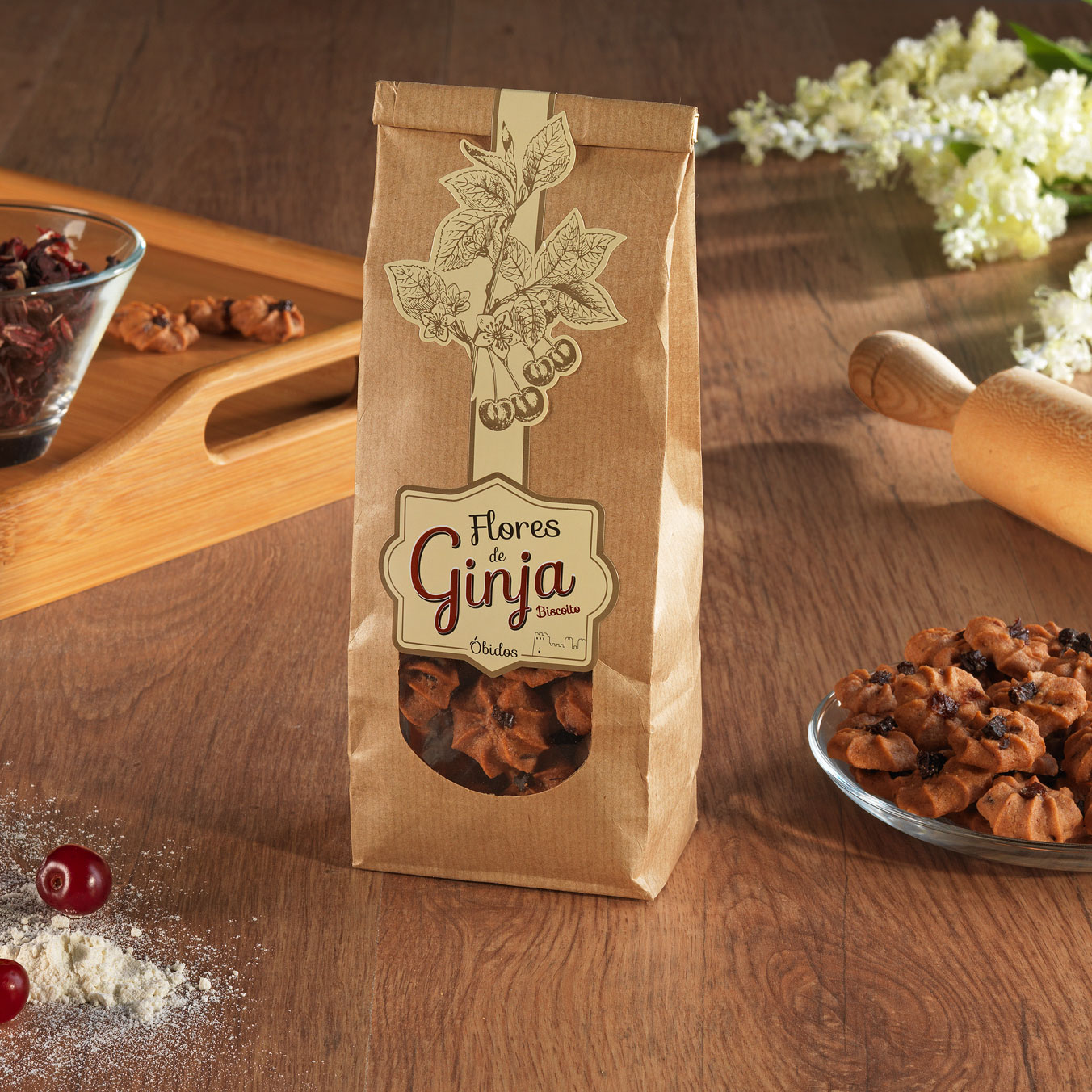 Biscoito de ginja de sabor e textura únicos, com ginja triturada e passas de ginja.
