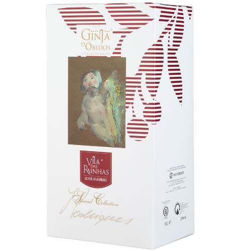 O seu licor de Ginja d’Óbidos engarrafado numa embalagem muito especial. Imagem desenvolvida pelo artista plástico José Rodrigues.